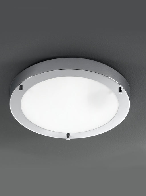 The Franklite CF5681 310mm Circular Flush Light In A Chrome Fitting With Matt White Glass. Rated Ip44 And Suitable For Use In Bathroom Zones 1, 2 A...