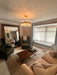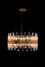 A contemporary suspended round chandelier with a matt gold band. Simply slot the clear glass into the frame for a stunning feature over your dining table, in your living area or bedroom. The light reflects beautifully through the glass pieces.