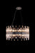 A contemporary suspended round chandelier with a matt silver band. Simply slot the clear glass into the frame for a stunning feature over your dining table, in your living area or bedroom. The light reflects beautifully through the glass pieces.