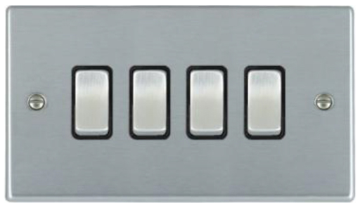 The Hamilton 74R21SS-B is a 10AX, 2 way plate switch. It has a satin stainless steel finish with black inserts. The 74R21SS-B has a slim profile ma...
