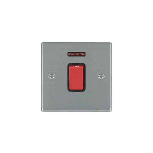 The Hamilton 7445B is a 45A double pole switch with a red rocker. It has a satin stainless steel finish with black inserts. The 7445B has a slim pr...
