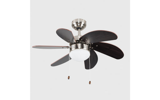 The MiniSun Typhoon 30"" ceiling fan features features a 3 speed fan and 6 reversible walnut wood and satin nickel blades blades finished with a fr...