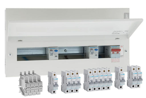 This double bank fusebox consumer unit design offers 44 ways and is ideal for situations where a larger consumer unit is required but space is at a...