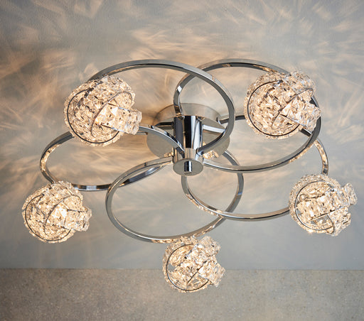 This 5 Light Flush fitting features a multitude of clear crystal glass droplets with crystal balls. Suitable for a low ceiling & works perfectl...