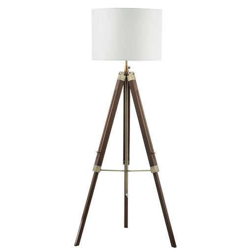 This Floor Lamp base has an adjustable tripod base finished in dark wood and antique brass accents, and is foot switched. Shown here with a white ...