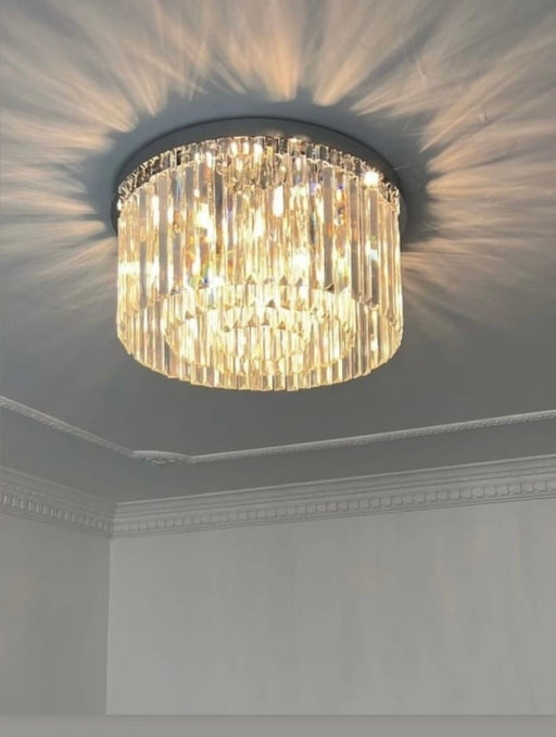 KHA1072 Chrome Flush 50cm Crystal Chandelier - LED SPECIFICATIONS: Finish: Chrome Diameter: 50cm Min-Height: 15cm Max-Height: 15cm Wattage Per Bulb...