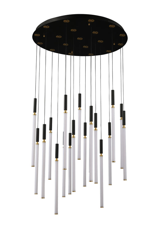 Florence Black Glass Rod Round Chandelier - LED SPECIFICATIONS: Finish: Black Diameter: 65cm Min-Height: 40cm Max-Height: 200cm Wattage Per Bul...