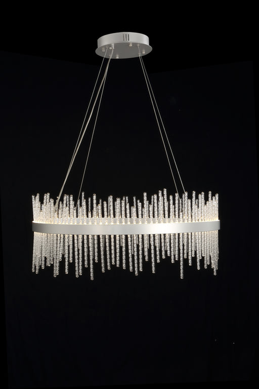 Florence Silver Glass Rod Round Chandelier - LED SPECIFICATIONS: Finish: Matt Silver Diameter: 65cm Min-Height: 40cm Max-Height: 200cm Wattage Per ...