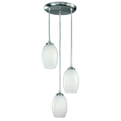 Multi Light Pendant with 3 x Matt Opal Glasses Satin nickel finish Multi Light Pendant plate with clear cable suspension and 3 glasses Additional I...