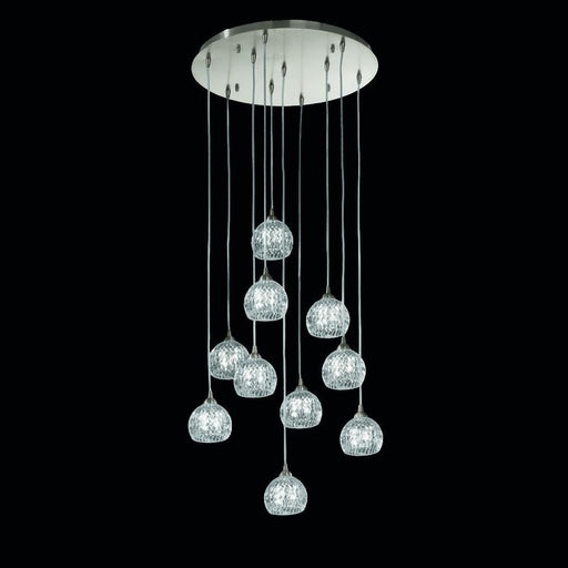 9 light Multi Light Pendant in satin nickel with clear cable suspensions. The length of the suspensions can be adjusted. Additional Information Max...