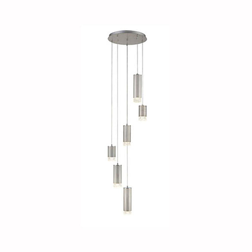 T5 light Multi Light Pendant in satin nickel finish with small cut glasses. Suitable for dimming if used with mains voltage halogen lamps. LED G9 l...