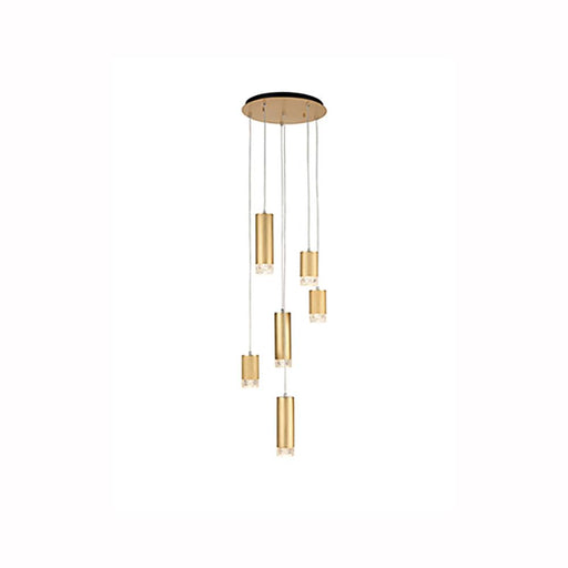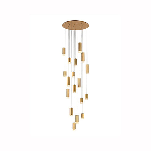 Rodney 19 Light LED Stairwell Light SPECIFICATIONS: Finish: Gold / Black Diameter: 85cm Min-Height: 60cm Max-Height: 400cm Wattage Per Bulb: LED 5....