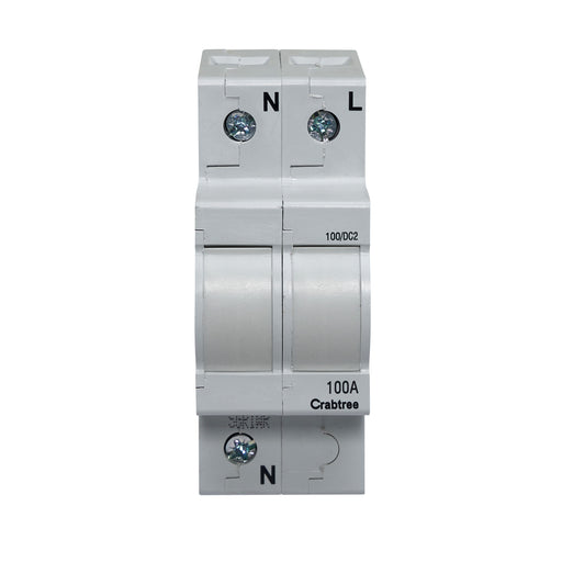 Description The Crabtree 100/2MTT is a 100A double pole main switch with twin supply terminals and a live tap-off terminal. This plug-in main switc...