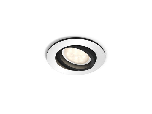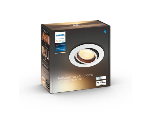 The flush-mount Philips Hue White Ambiance Milliskin spot in aluminium blends seamlessly into its surroundings while providing warm-to-cool white l...