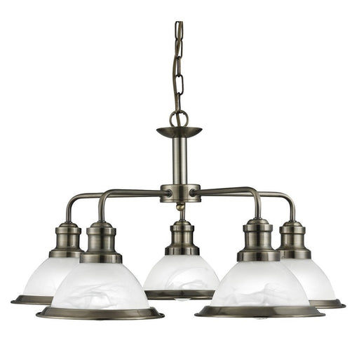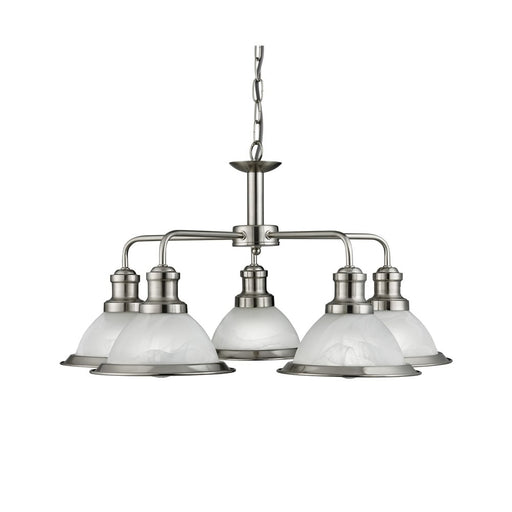 This Bistro satin silver 5 light ceiling fitting with acid glass shades has a simplistic look that will add add a retro feel to any dining room or...