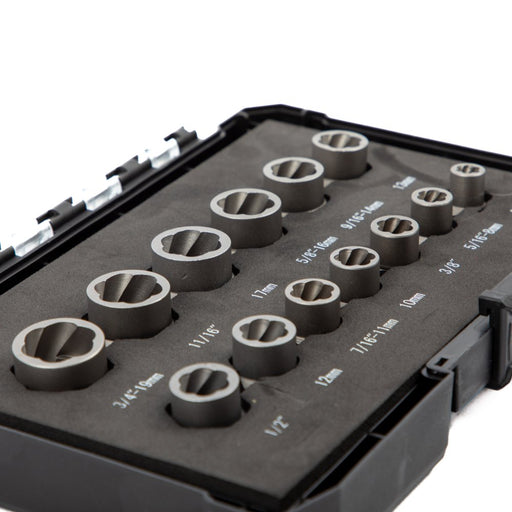 Description Rescue Damaged or Rounded Fasteners with Precision & Power This 13-piece Twist Socket Nut Extractor Set is designed to grip, bite, ...
