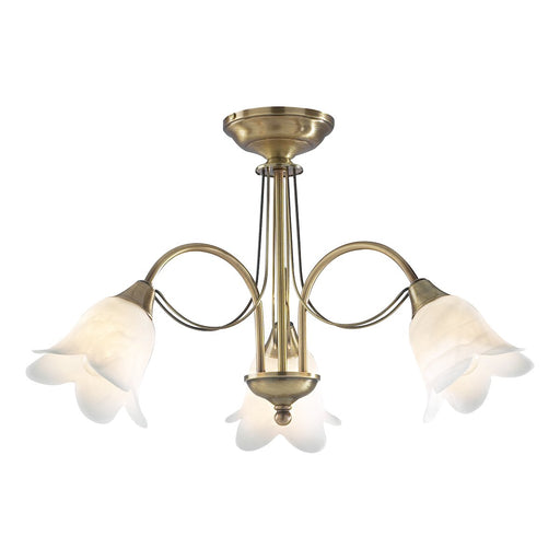 This 3 Light Semi Flush Light features opaque glass shades and antique brass frame.Additional InformationHeight: 33.5cmDiameter: 34cmFinish: Antiqu...