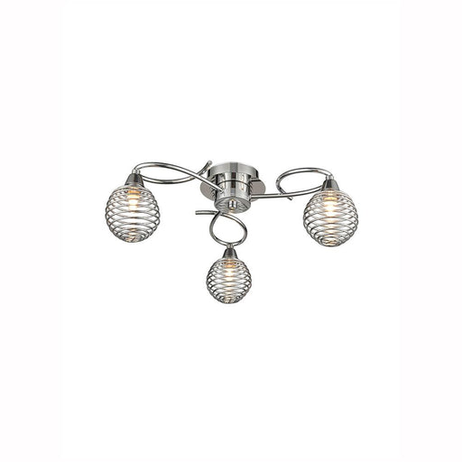 3 light flush Fitting in chrome finish with springy non-rigid cages covering the lamp holders. Additional Information Diameter: 420mmFinish: Chrome...