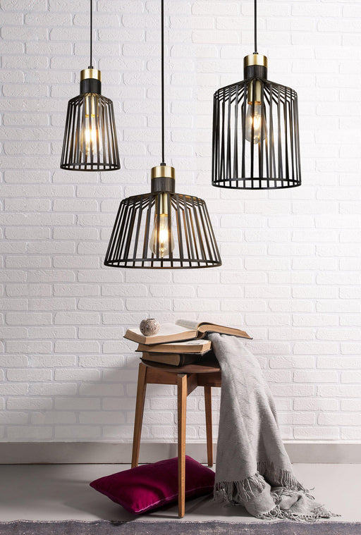 Turn heads with this cage frame pendant in black and gold. The light is stylish and on trend, thanks to the cage frame design. The black and sat...
