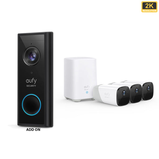 SKU: 2 x EufyCam 2 Add On Camera 1 x Eufy Security 5 Piece Home Alarm Kit 1 x Eufy Video Doorbell 2K (Battery-Powered) Add-on 2 x Motion Sensor