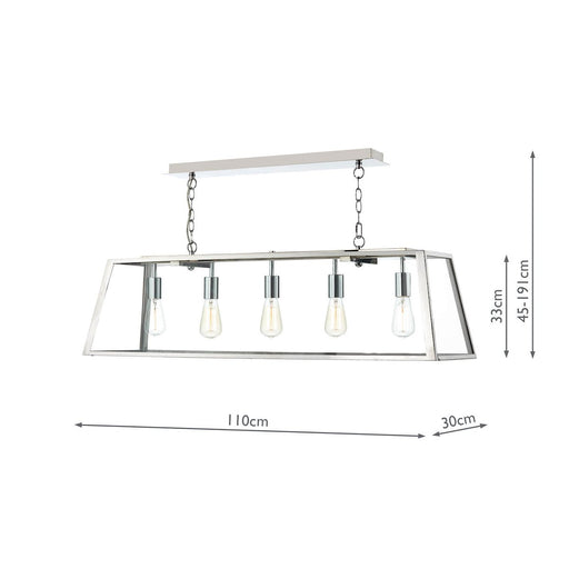 Perfect for use over kitchen islands or dining room tables, This 5 light box Pendant has a matt black ceiling plate and frame with clear glass pane...