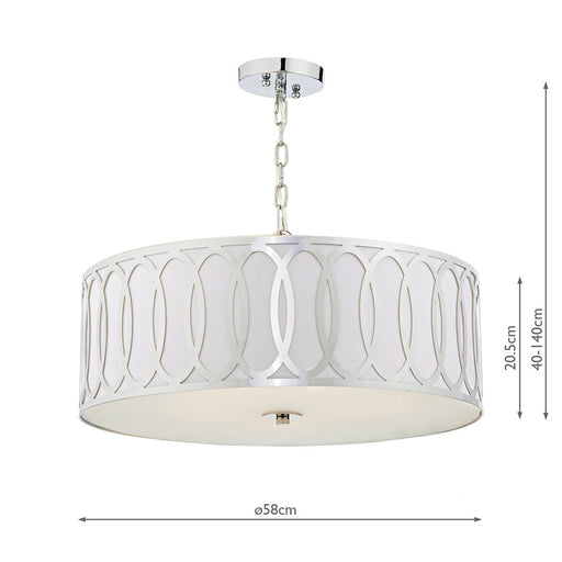 Wonderfully elegant with a luxury white faux silk inner shade in a laser cut polished chrome frame with glass diffuser the Acura with 5 lights thro...