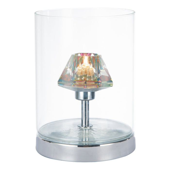This Touch Table lamp has a dichroic glass inner shade and a clear glass outer surround.
