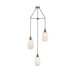 3 light Suspended Light in satin nickel finish with black braided cable suspensions and 150mm diameter matt white glasses.