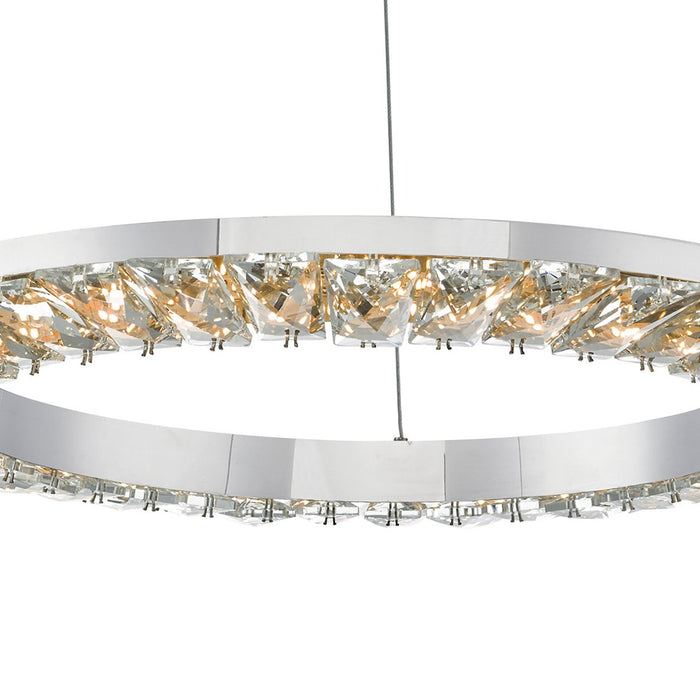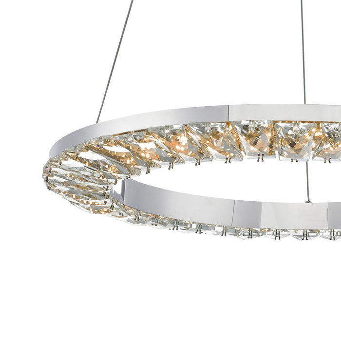 A contemporary ring of faceted crystals lit by efficient LEDs which can be dimmed using a suitable dimmer. Available as a flush or pendant fitting, this simple design brings out the clarity and beauty of its large crystal pieces.