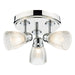 Compact IP44 polished chrome ceiling plate with 3 adjustable heads with ribbed glass shade giving a period feel to this fitting.