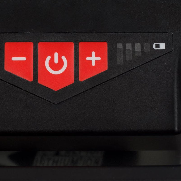 18V power tool battery compatible. On/Off switch with +/- brightness function and 4 selectable power output.