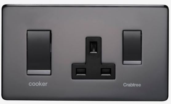 Crabtree 7521/BKN Black Nickel 45A Switch 13A Socket Cooker Control Unit