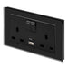 Retrotouch Crystal 13A Double Socket with 3.1A Dual USB & USBC - Black Glass and Black Trim