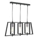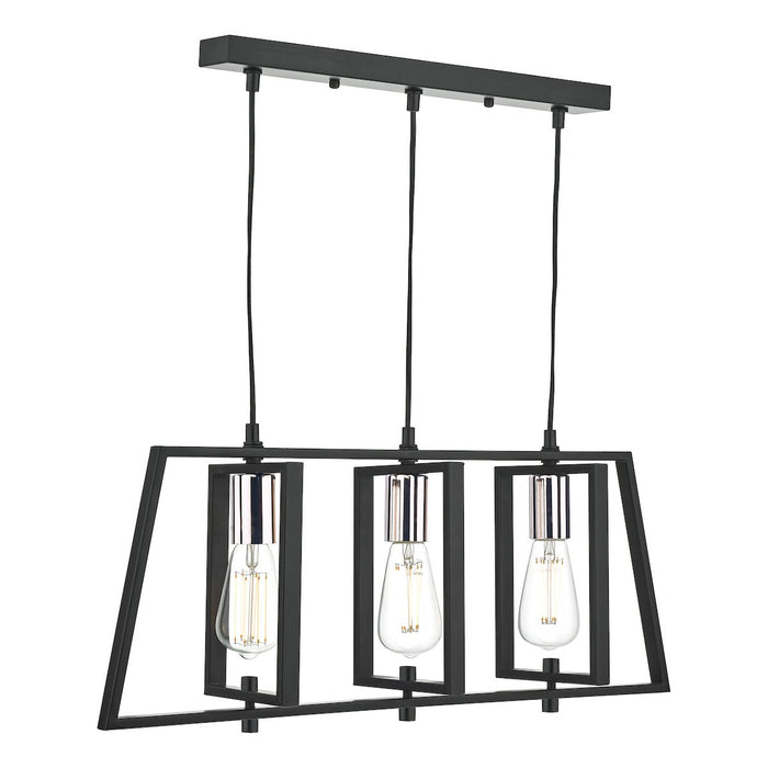 Three-light bar pendant complete with chrome lamp holders framed in matt black. The central pieces of the frame can rotate to create various looks. The three hanging cables are adjustable on installation.