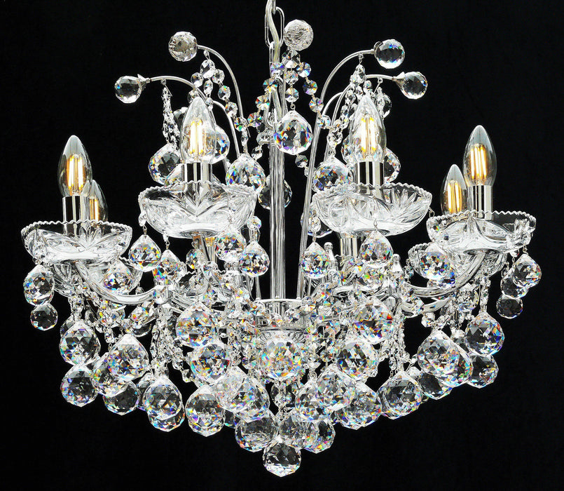 The Fantastic Lighting 5005/8 Callas Crystal Chandelier is a beautifully crafted multi arm light embellished with the finest crystal balls, featuring top-quality polished chrome metalwork. This eye-catching chandelier is suitable for use in most interior settings.