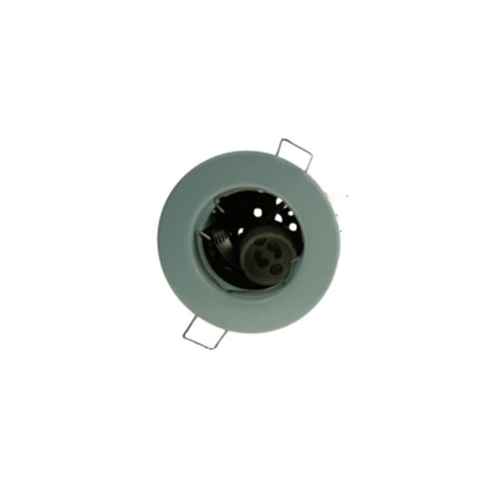 A Fire Rated Downlight which takes a GU10 bulb and is Fixed and finished in White.