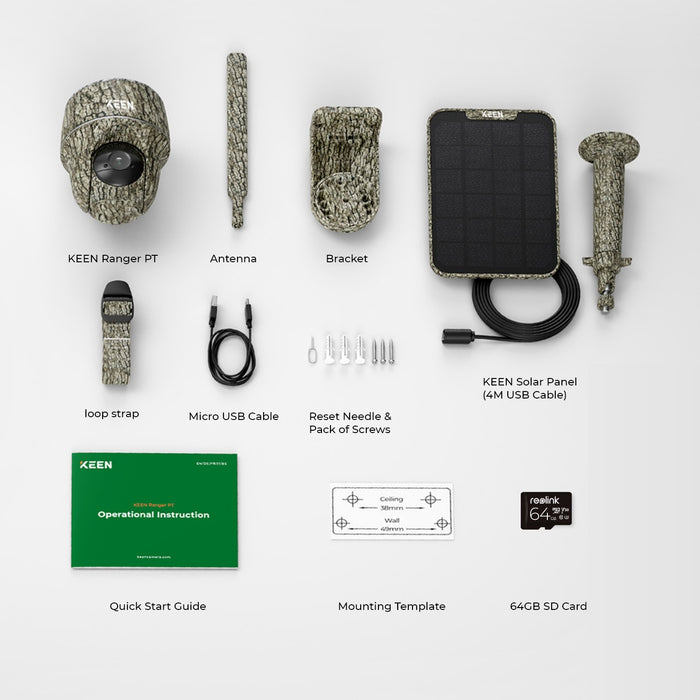 Keen Ranger 2K 4G LTE P&T Camera with 6W Solar Panel & 64GB MicroSD Card