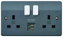 MK K2744GRA 2 Gang Double Pole with 2 x USB Charging Ports