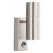 "This Stainless Steel 2 Light Outdoor Light with Motion Sensor is perfect for welcoming you home and deterring would-be intruders. The rectangular wall attachment features a modern motion sensor connected to a stylish cylindrical light with two lamps providing both uplight and downlight. It is also IP44 rated and fully splashproof to protect against the elements. Complete with Integrated LED lamps.