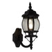 This Bel Aire black outdoor wall uplighter with clear glass gives the exterior of your home a look of exclusivity. The style of the lamp is traditional, with intricate design and a high quality finish. The lamp looks beautiful on any wall, and illuminates drives, pathways and gardens to stunning effect. It is also IP44 rated and fully splashproof to protect against the elements.