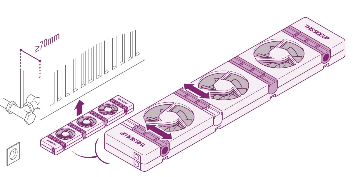 When the radiator close to the thermostat switch gets to 33 degrees, the fans will turn on automatically. As a result, the radiator moves heat more quickly from the radiator into the room. The room is brought to the desired temperature more quickly and the heat is also better distributed.