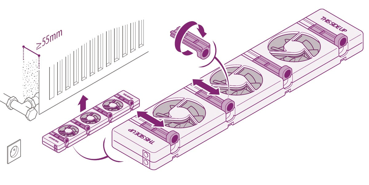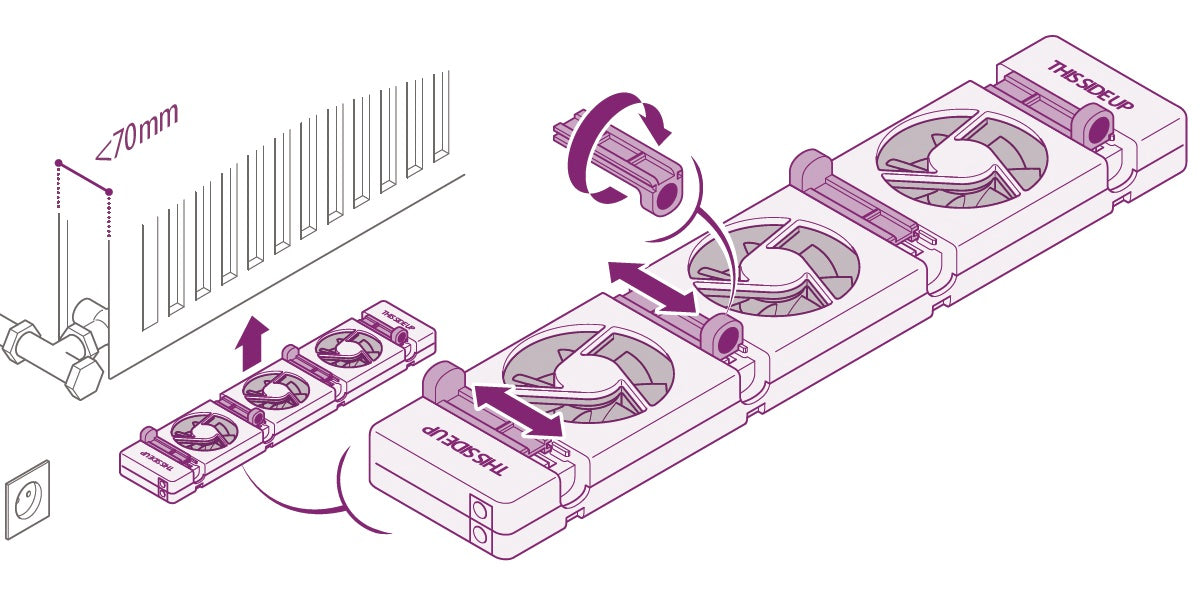 When the radiator close to the thermostat switch gets to 33 degrees, the fans will turn on automatically. As a result, the radiator moves heat more quickly from the radiator into the room. The room is brought to the desired temperature more quickly and the heat is also better distributed.