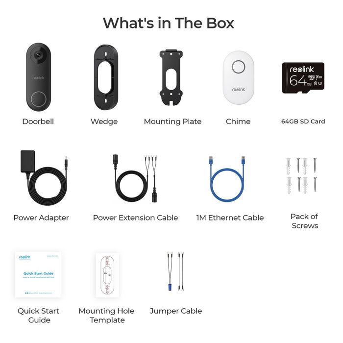 Reolink 2K 5MP WiFi Smart Video Doorbell Camera with Chime & 64GB MicroSD Card