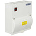 The NM806LSPD is a 8W Main switch only consumer unit. It includes a 100A main switch with twin line and neutral supply terminals and a 100A fixed busbar assembly.
